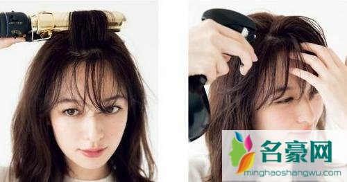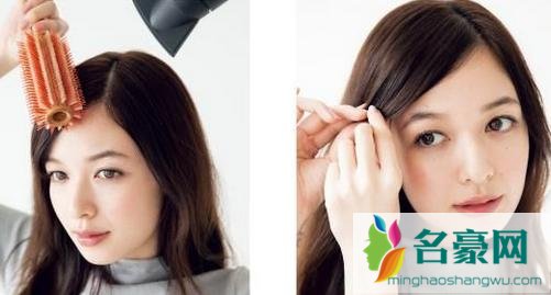 Step 1:把刘海分到一侧,用大号卷发梳子向内卷刘海用吹风机吹。