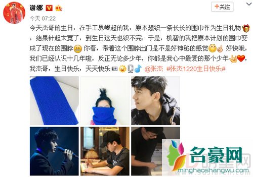 今天是张杰35岁的生日,作为妻子的谢娜自然也是要做出表示的,因此早上谢娜就在微博上晒出多张照片为老公庆生,并且还送了一份自己亲自手工做的礼物,配文说:“今天杰哥的生日,在手工界崛起的我,原本想织一条长长的围巾作为生日礼物,结果针起太宽了,到生日这天也织不完,于是,机智的我把原本计划的围巾变成了现在的围脖。”这么看来谢娜怀孕以后在家养胎时也没闲着嘛,还抽空给老公织围巾,可以说是相当贤惠了。