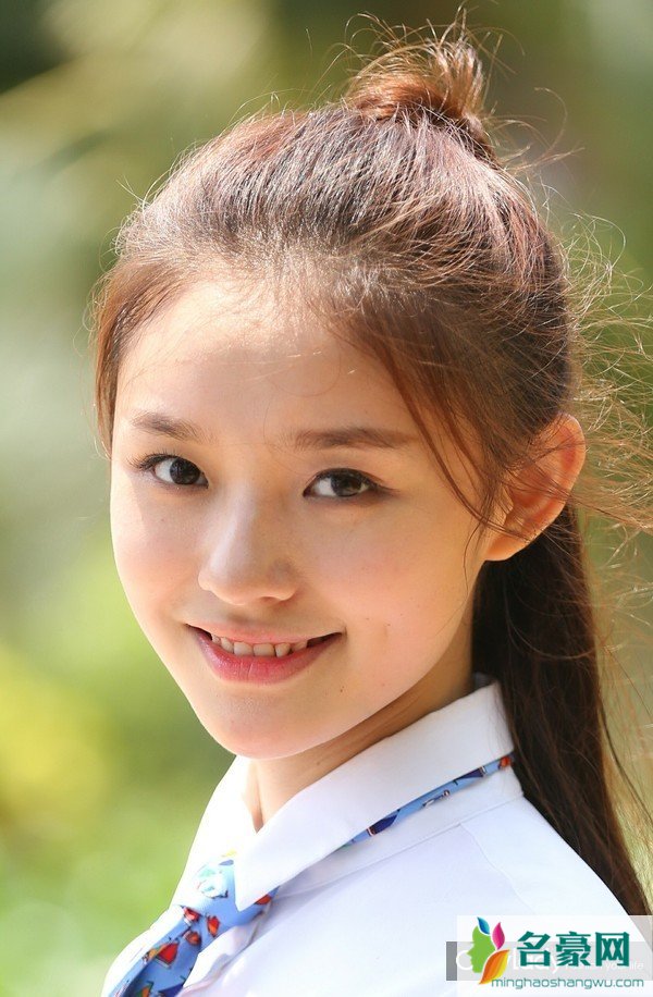 蝴蝶领结校服装搭配凌乱微卷的高马尾,两鬓耷下来的凌乱的碎发自然可爱,轻轻一笑百媚生。