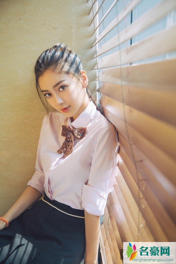 蝴蝶领结的浅粉色衬衫配短裙,再加上高高竖起的马尾辫,少女感爆棚清纯可人。Baby 你这么美是犯规的呀!