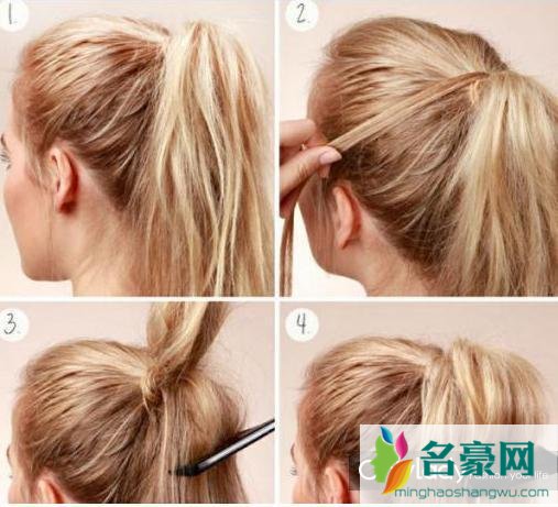 ②挑出一簇头发将皮筋覆盖住(这一点很重要哦,会让高马尾看起来和整体秀发浑然一体)