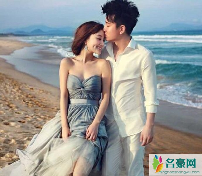 贾乃亮和李小璐的海滩婚纱照