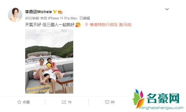 李嘉欣晒一家三口合照