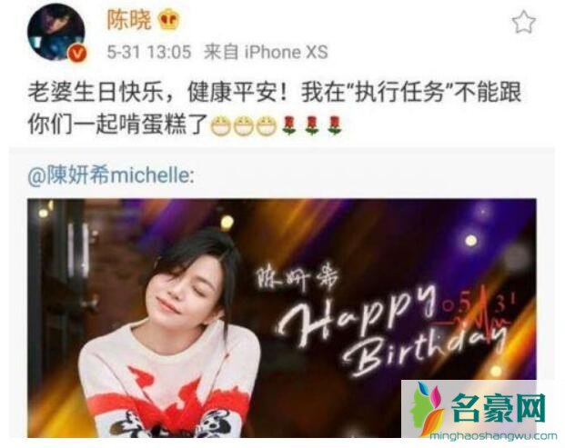 近日,陈晓在社交平台上更新了动态,陈晓在网上发文为老婆陈妍希庆祝生日,陈晓发文表示:“老婆生日快乐,健康平安!我在‘执行任务’不能跟你们一起啃蛋糕了”。