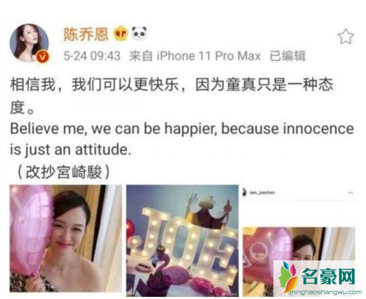 据悉,在5月24日凌晨,陈乔恩也在社交平台上更新了动态,陈乔恩晒出了一组自己的美照,并且配文表示:愿你善其身、愿你遇良人、暖色浮余生、有好人相伴。因文案取自伤感歌曲中的歌词,被网友传与艾伦疑似分手,二人情感产生纠葛。