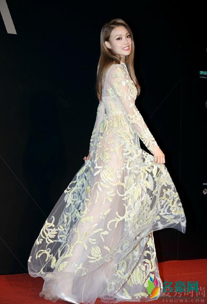容祖儿这身柠檬花刺绣连衣裙,清新淡雅不失性感,就是这随意的长发换成盘发会更加完美。