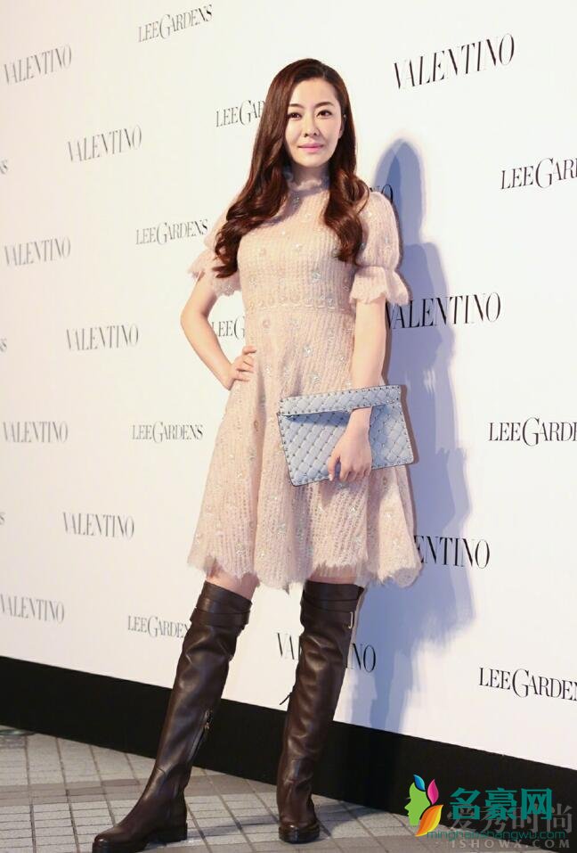 林心如也是Valentino的忠实粉,且看这套黑色与粉色交织的雪纺裙,飘逸唯美。