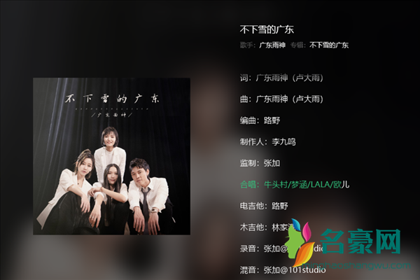 据悉《不下雪的广东》中女声演唱的部分分别是由LALA、梦涵和欧儿演唱的,除此之外在都抖音上热门的女生DJ版《不下雪的广东》是由歌手黎小霸创作的。
