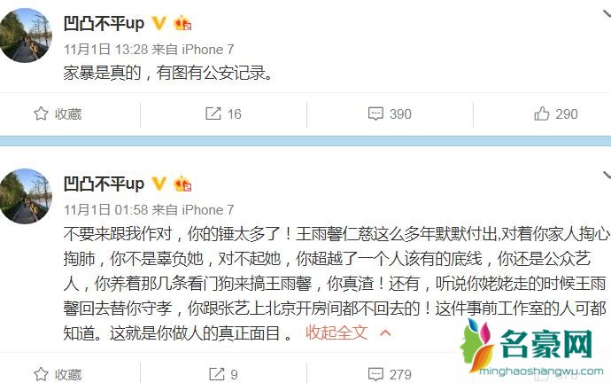 凹凸不平up的爆料引起很多网友的关注,看起来似乎都有实锤的猛料到底是真是假,凹凸不平up和黄景瑜是什么关系呢?据凹凸不平up的微博透露,自己并非是王雨馨,只是看到前妻受尽委屈,被人家暴,而这个“人渣”却依旧潇洒,事业有成,还有了新的女朋友,所以这才打报不平的。