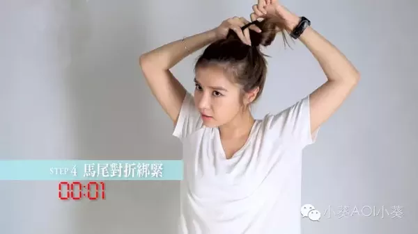 Step 1 先把头发分成两部分后,再用橡皮筋绑成高耸的马尾