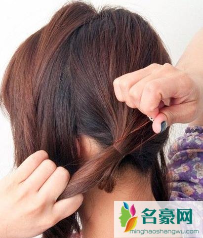 另一端的头发从上层开始,扭转一下,拉向脑后位置。