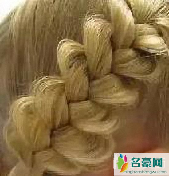 3、把头顶一侧的头发编成三股辫,最后用小瓜夹暂时固定;