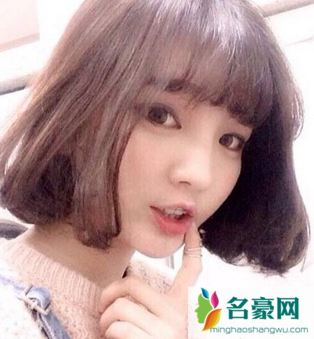 厚重感的波波头发型,是相对瘦脸的短发了,搭配自然的饿黑色发色,很时尚好看呢,搭配齐刘海遮住了大脸型,瘦瘦的!