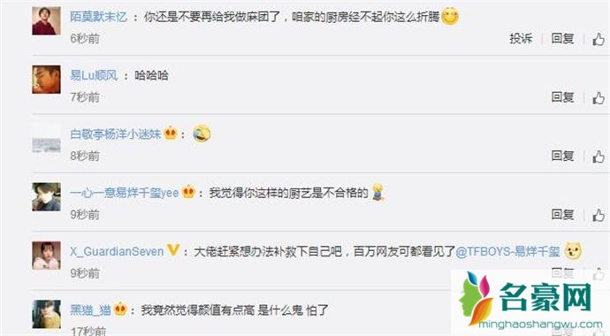 虽然易烊千玺现在的厨艺确实有些不堪入目,但是众多网友表示被这么可爱的易烊千玺圈粉了。并且表示:厨艺还可以抢救下但是以后学做菜一定要找个人人监督,万一厨房炸了怎么办。