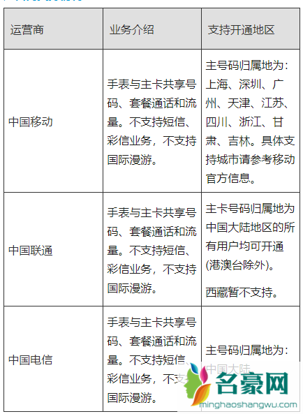 华为watch3支持中国联通的eSIM一号双终端业务,但目前只支持归属地是大陆地区的号码,西藏暂不支持。套餐收费每月10元。另外还支持中国移动和中国电信,将手表设立为手机号码的副卡,即可独立通话、联网,和手机号码共享流量、通话、号码。但不支持短信、彩信,以及国际漫游。