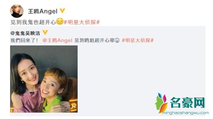 近日,鬼鬼在社交平台上更新了一条动态,鬼鬼晒出了一张与王鸥的合影,并且宣布了回归《明星大侦探5》综艺节目,鬼鬼开心写道:“我们回来了!见到鸥姐超开心耶!”随后王鸥转发称:“见到我鬼也超开心”。