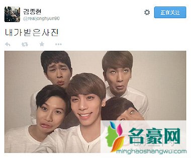 SM娱乐公司人气男团SHINee成员钟铉在个人的推特上公开了一组成员“自黑”照片,照片中,成员穿着统一的白衬衫上衣,一起进行恶搞表情,将“自黑”的道路越走越远。真是长的帅就任性,就不怕掉粉吗?尤其是珉豪的表情,真是亮瞎了。任怎么扭曲,我就是帅。